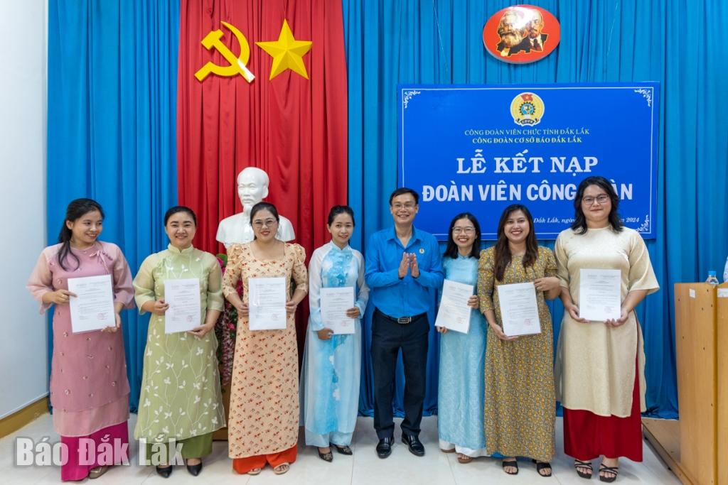 | Phó Chủ tịch Thường trực Liên đoàn Lao động tỉnh Nguyễn Thị Lý tặng hoa chúc mừng Hội LHPN tỉnh Đắk Lắk. |