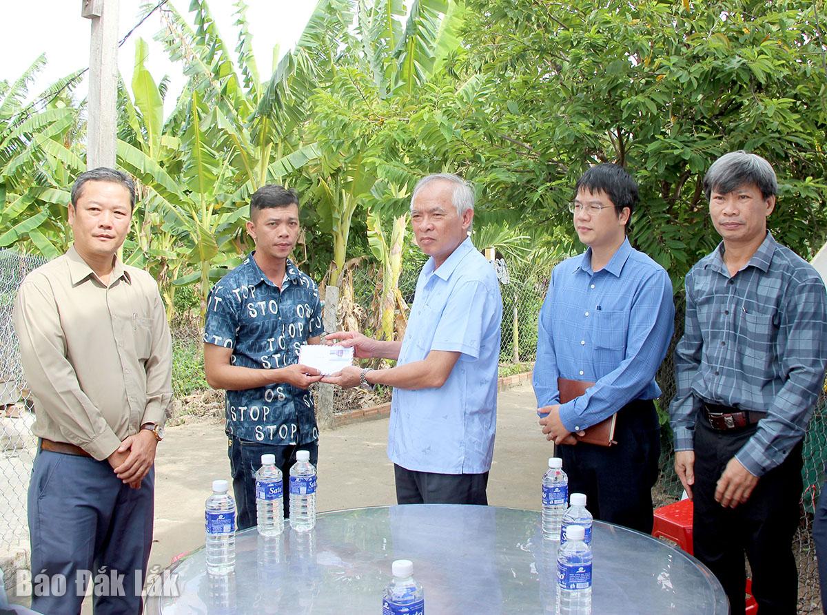 | Phó Chủ tịch LĐLĐ tỉnh Lê Thị Ngọc Hoa tặng quà cho 5 đoàn viên có hoàn cảnh khó khăn. |