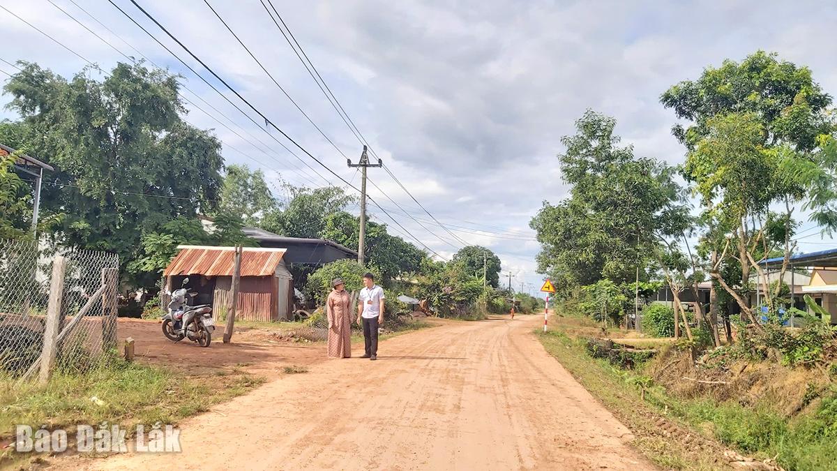 | Thầy Bùi Xuân Lễ, Hiệu trưởng Trường Phổ thông DTNT THPT N’Trang Lơng đã trao biển tượng trưng 16 tấn gạo ủng hộ bà con vùng lũ Đắk Lắk cho Nhà văn Niê Thanh Mai, Chủ tịch Hội Văn học Nghệ thuật tỉnh Đắk Lắk. |